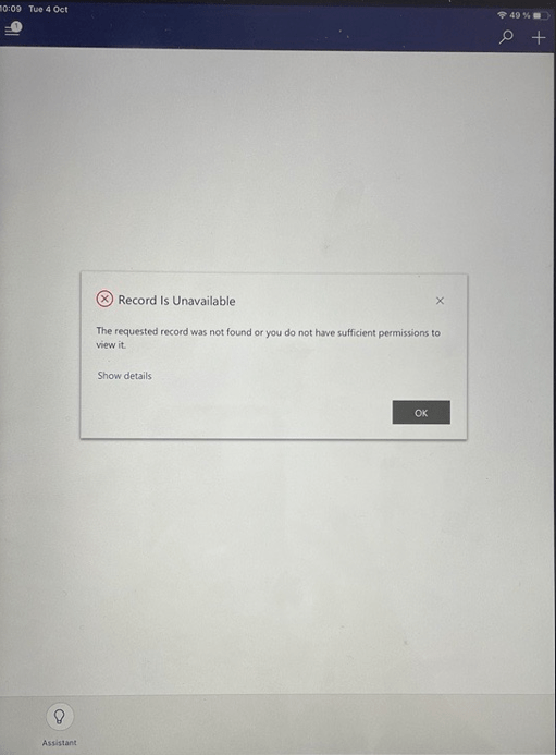 Issue # 1 – The above URL scheme doesn’t allow to specify Power platform environment. This causes inconvenience to the user who has access to several environments. Basically, the above redirection to the D365 Mobile app tries to open the Dataverse record in the recently accessed environment. In my scenario I had previously opened Test environment and I was trying to redirect from my canvas app to a record in my development environment which doesn’t work.