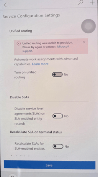 Recently I tried to turn on Unified Routing in a trial environment which is not as straight forward as documented in the Provision Unified routing for customer service. I got the error “Unified Routing was unable to provision. Please try again or contact Microsoft Support” basically asking to create a support ticket from the Power Platform Admin center. I did create a support ticket because the error was not very clear on why it was occurring and there is not much troubleshooting information on the internet regarding this issue.