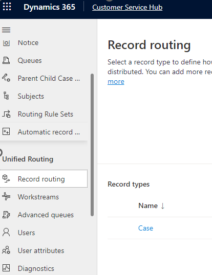 - Once the record type is added as shown in the above screenshot, then navigate to Workstreams (just below Record Routing in the site map as shown in the above screenshot)
